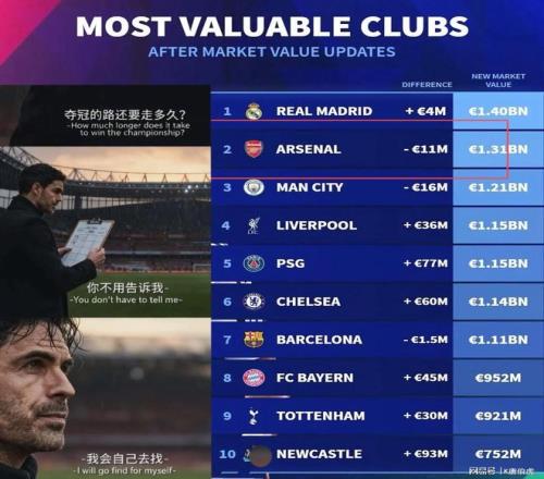 在最新發(fā)布的世界俱樂部身價排行榜單中,阿森納排在了第二名,僅次于皇馬。也因此不得不說壓力已經(jīng)全部給到了阿爾特塔,本賽季再不奪冠,那么相信他自己也都無法接受繼續(xù)待在酋長球場了!