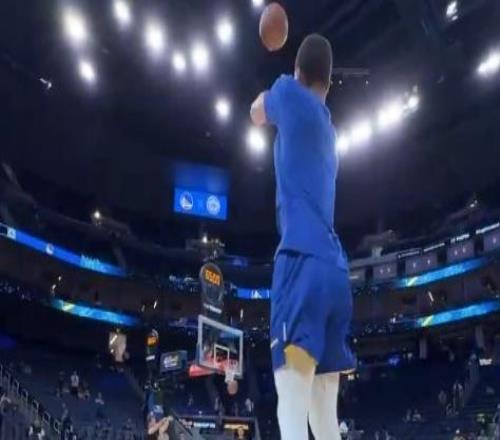 就是準!庫里賽前熱身時連中l(wèi)ogo三分,輕松寫意